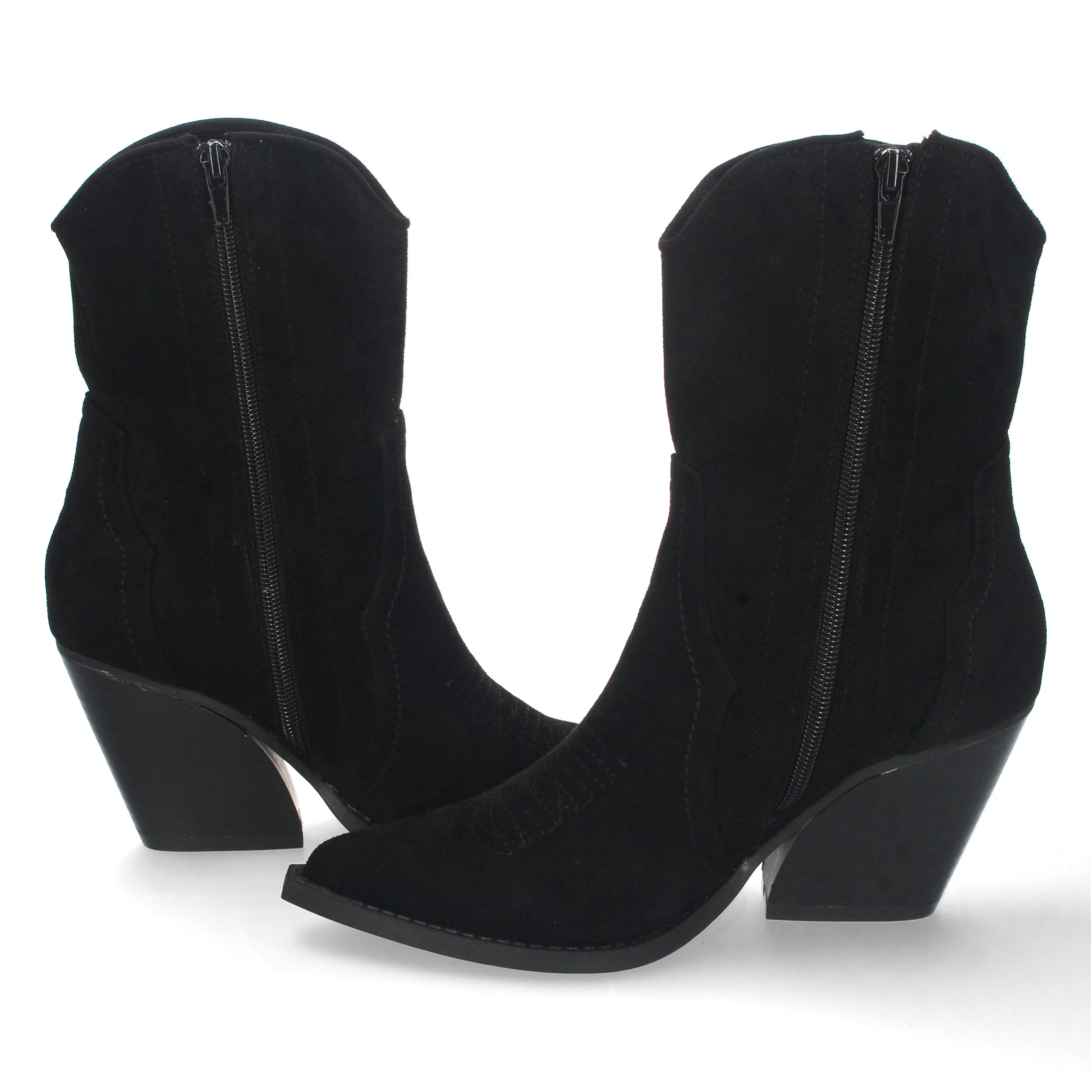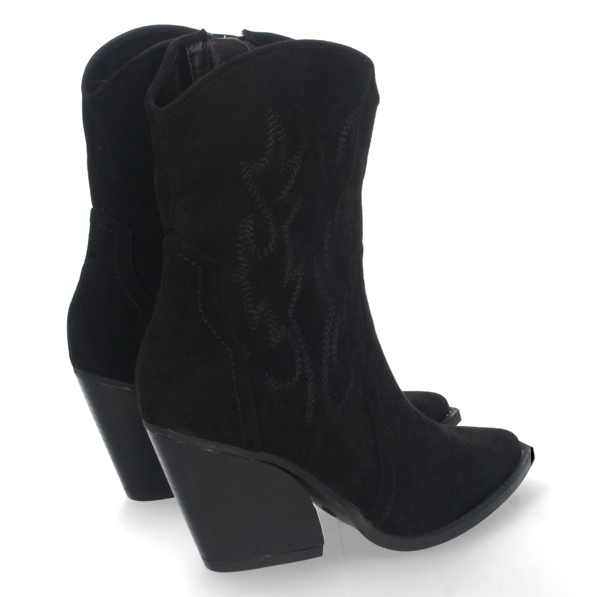 Bota cowboy en acabado ante con bordado lateral y punta fina.