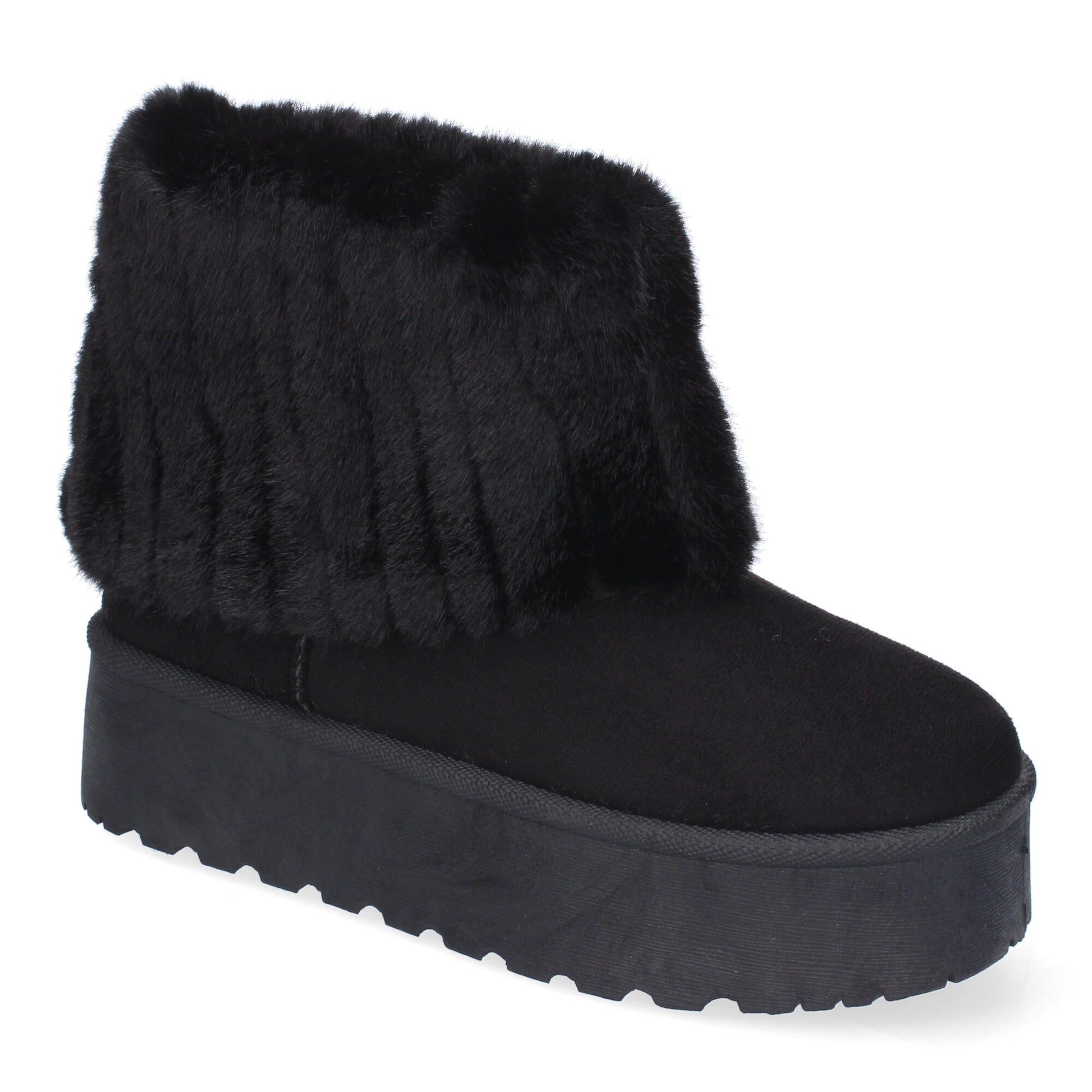 Botín australiano con plataforma y diseño de pelo suave en la caña. Interior cálido y cómodo para invierno.