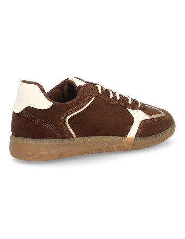 Deportiva estilo retro con cierre de cordones en dos colores. Materiales suaves y suela plana.