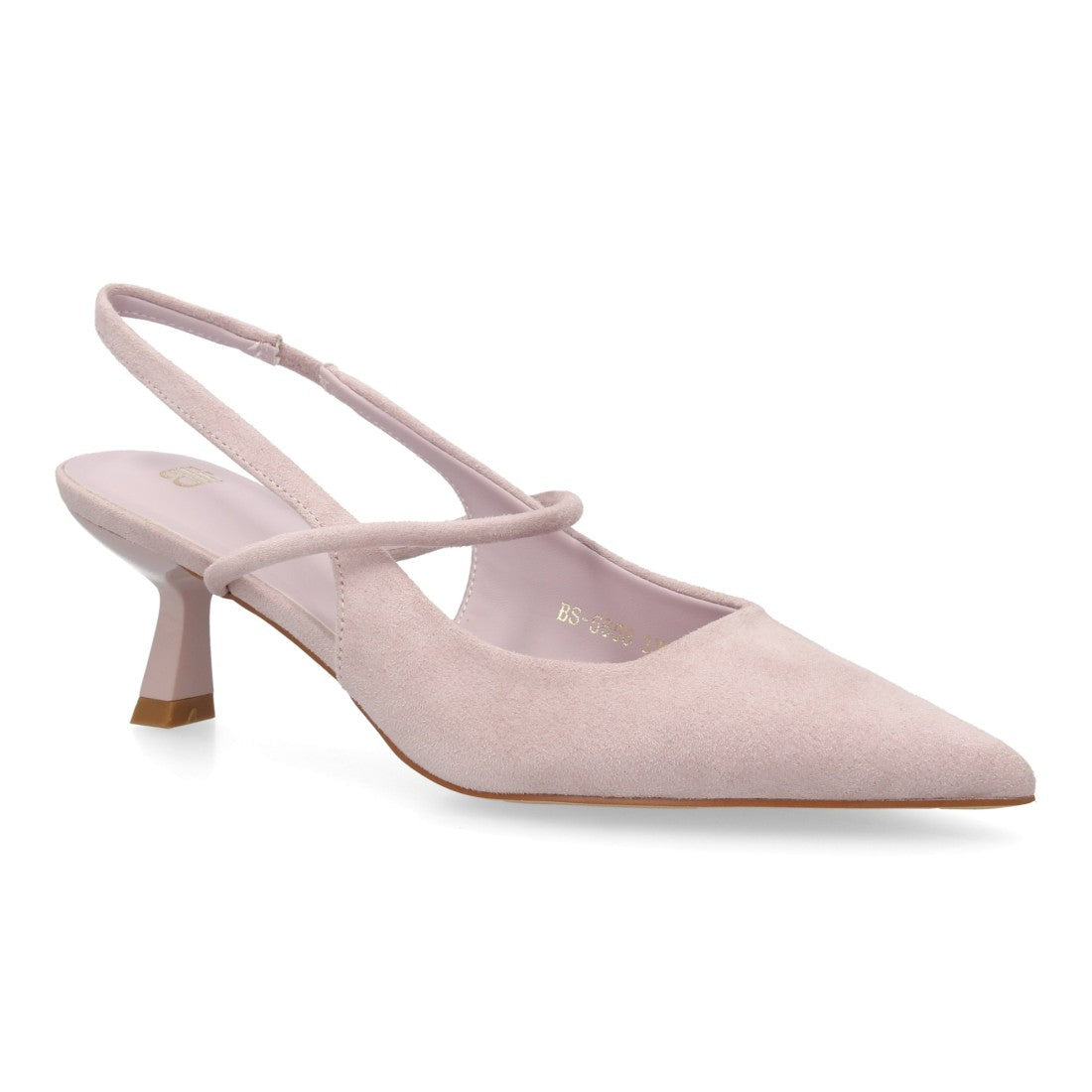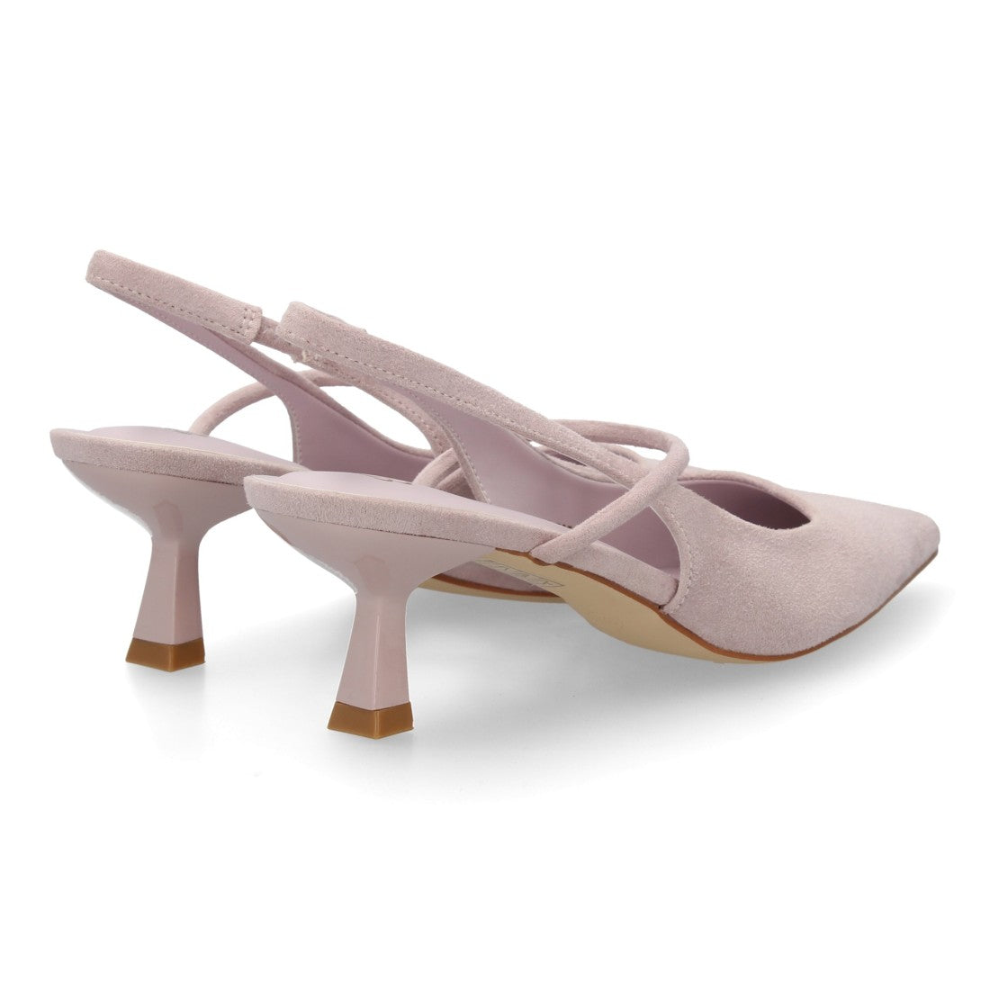 Zapato destalonado con tacón bajo, punta fina y tira cruzada. Estampado liso.