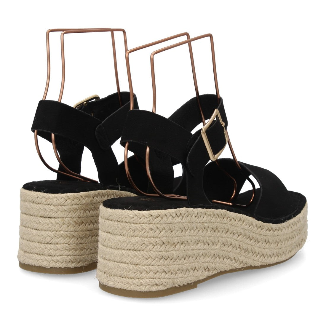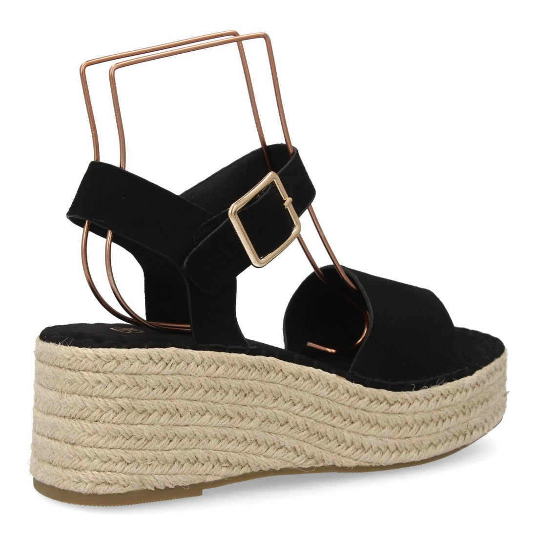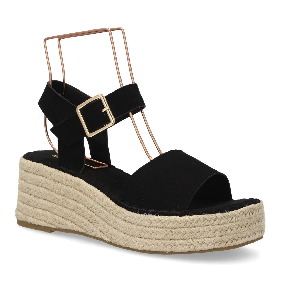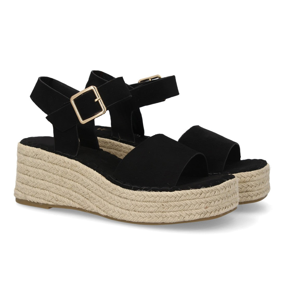 Sandalia con cuña de yute acolchada y ligera para el día a día. Tira ancha y cierre con hebilla ajustable.