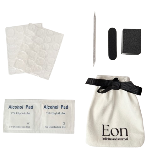 En EON ofrecemos dos métodos de aplicación para nuestras uñas press-on: mediante adhesivos (stickers) o utilizando pegamento líquido. Ambos métodos están incluidos con tu pedido. A continuación, te detallamos los pasos para cada opción.