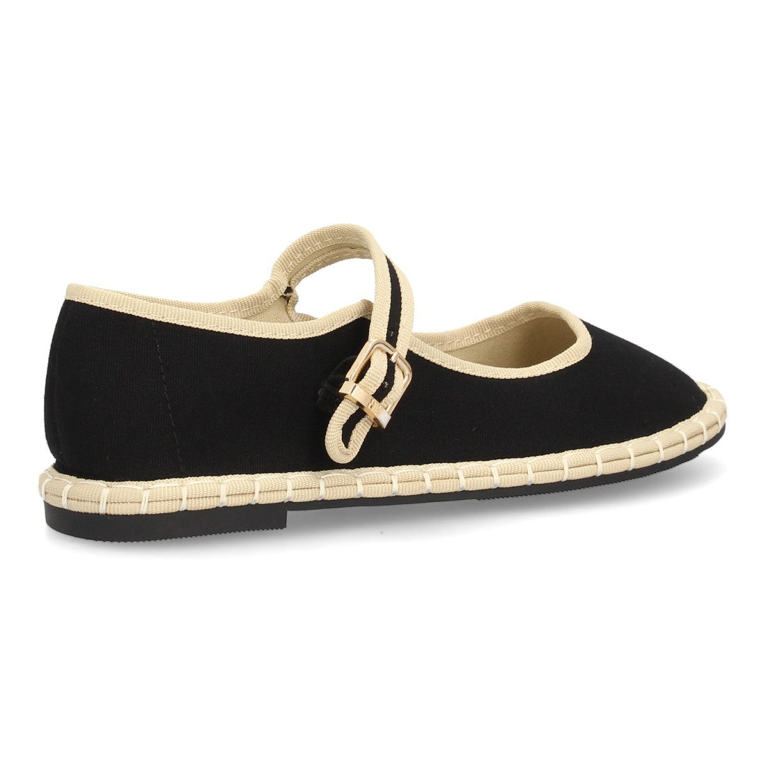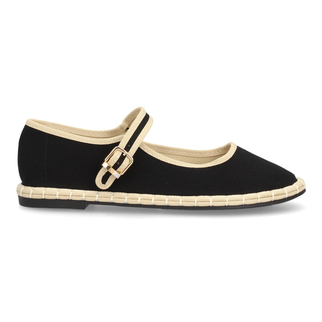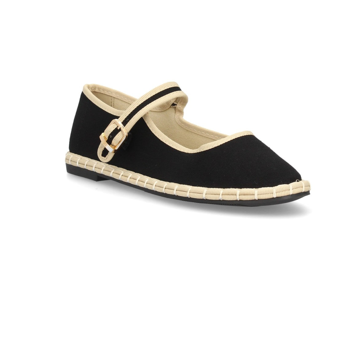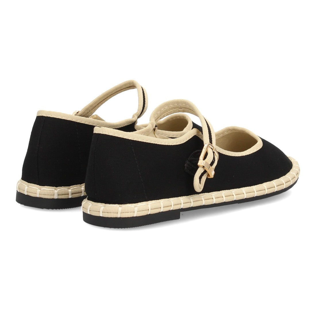 Bailarina con pulsera ajustable y acabado de terciopelo suave. Borde textil en contraste y suela plana ligera.