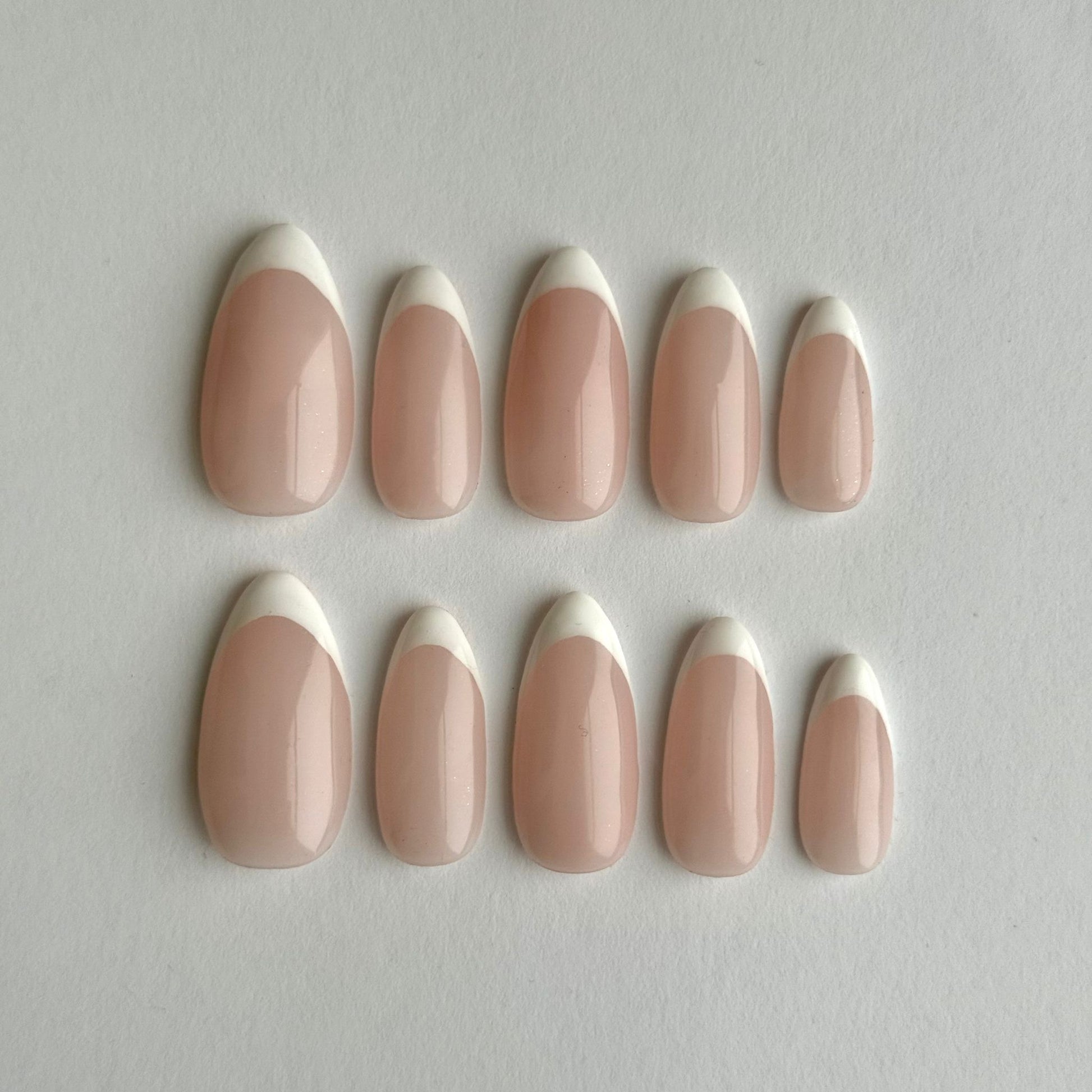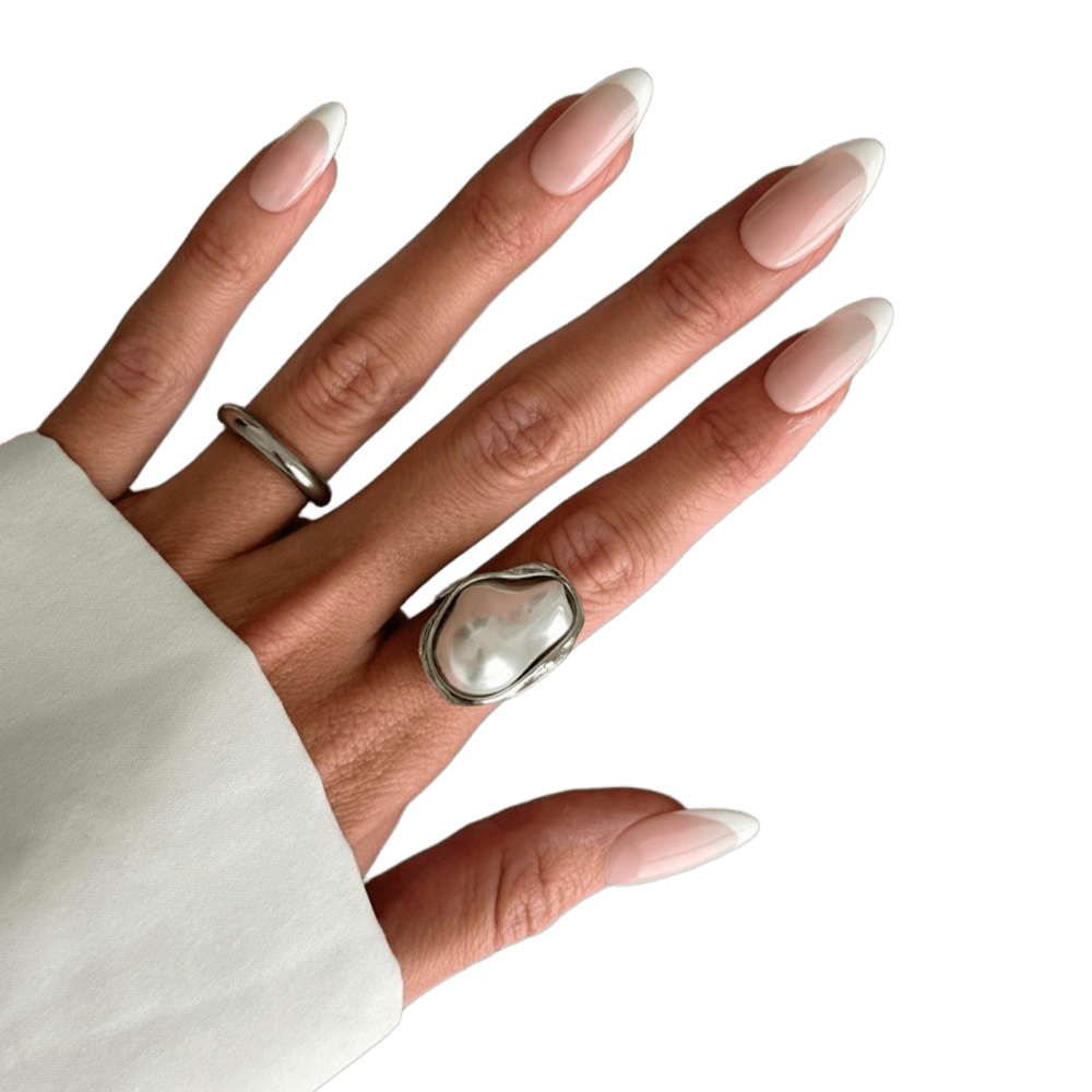 Set de uñas press on con el clásico diseño francés: base nude translúcida y punta blanca perfectamente definida. Una versión moderna del estilo más atemporal, ideal para cualquier ocasión — desde el día a día hasta los eventos más especiales.
