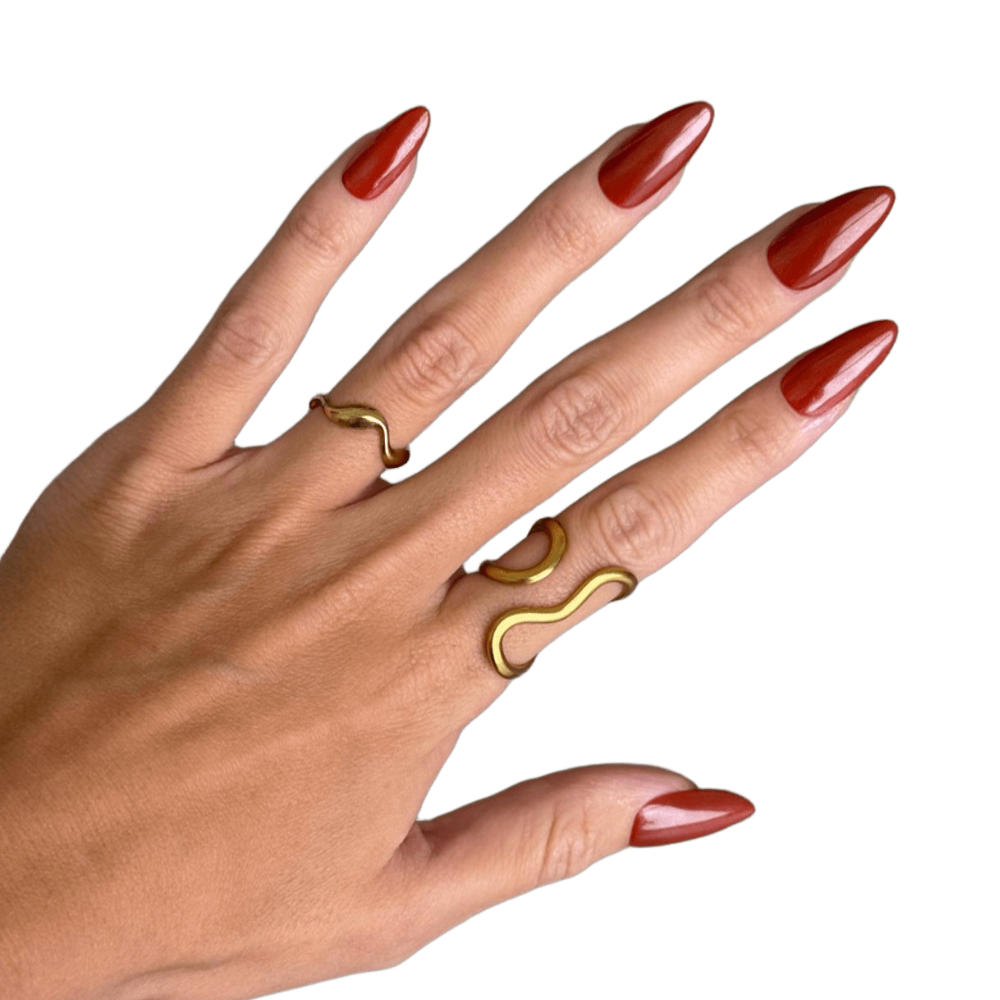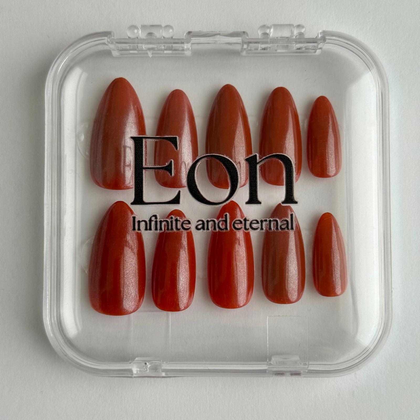 Set de uñas press on en un tono terracota cálido con acabado glaseado. Un diseño sofisticado y atemporal que captura la esencia de los tonos tierra y el equilibrio entre elegancia y naturalidad. Ideal para quienes buscan un estilo sereno, versátil y en tendencia esta temporada otoño-invierno 2025/2026.