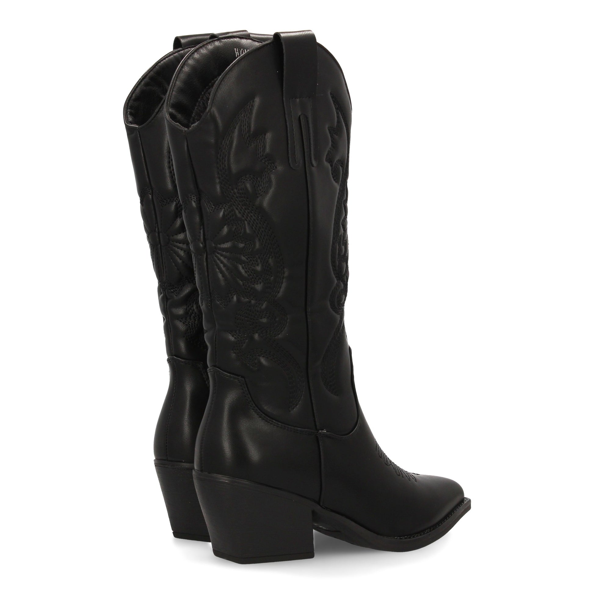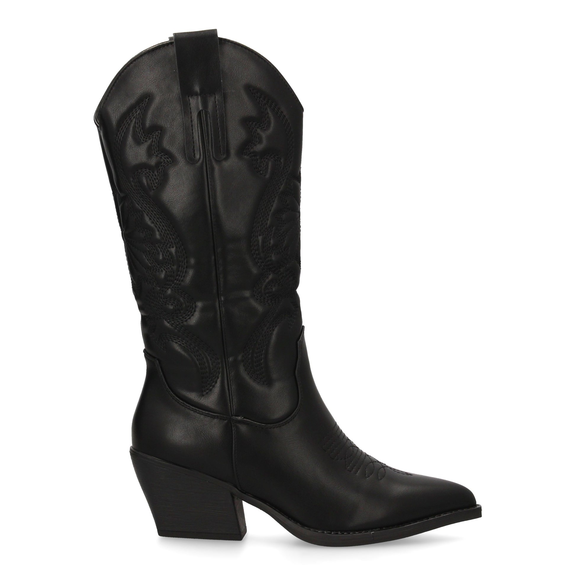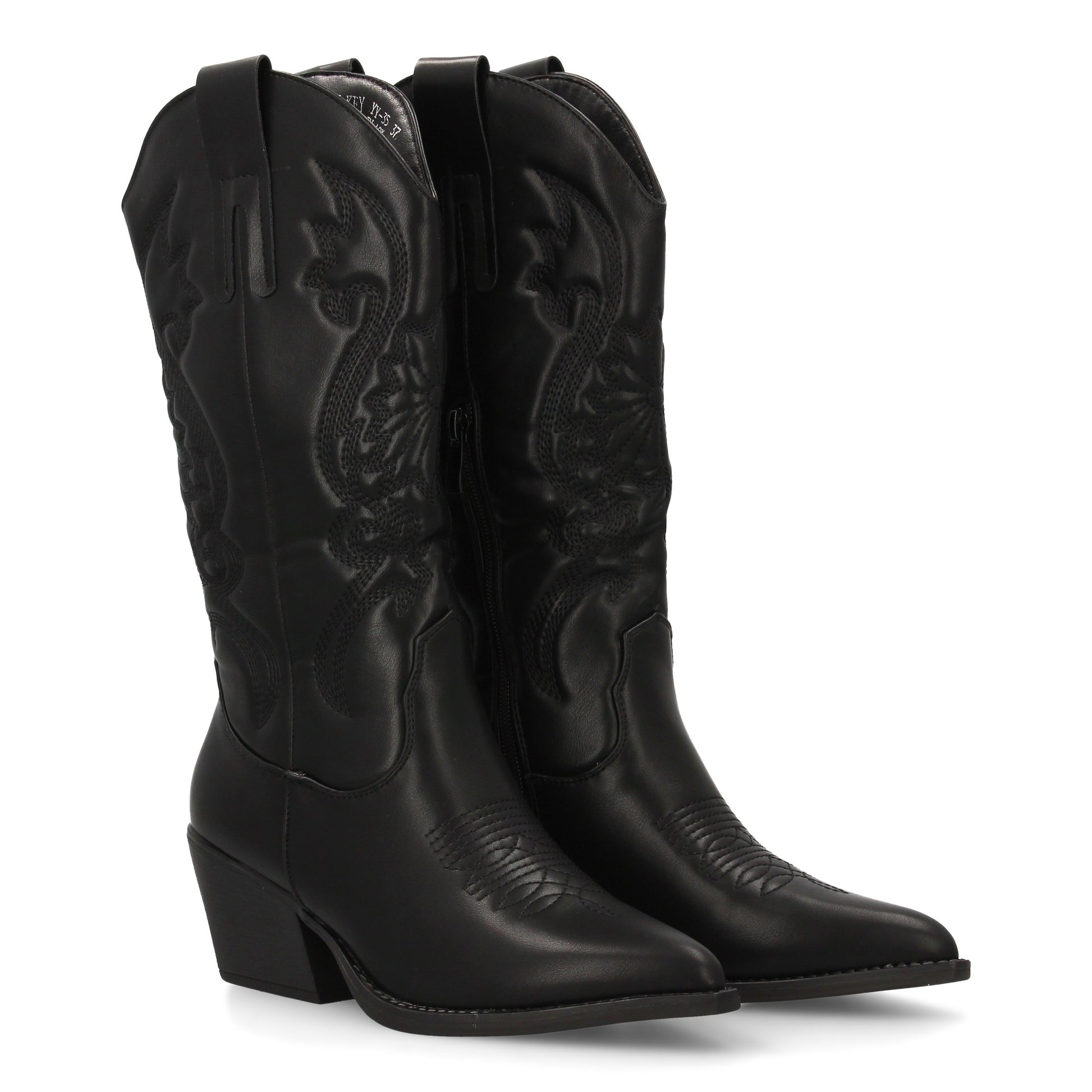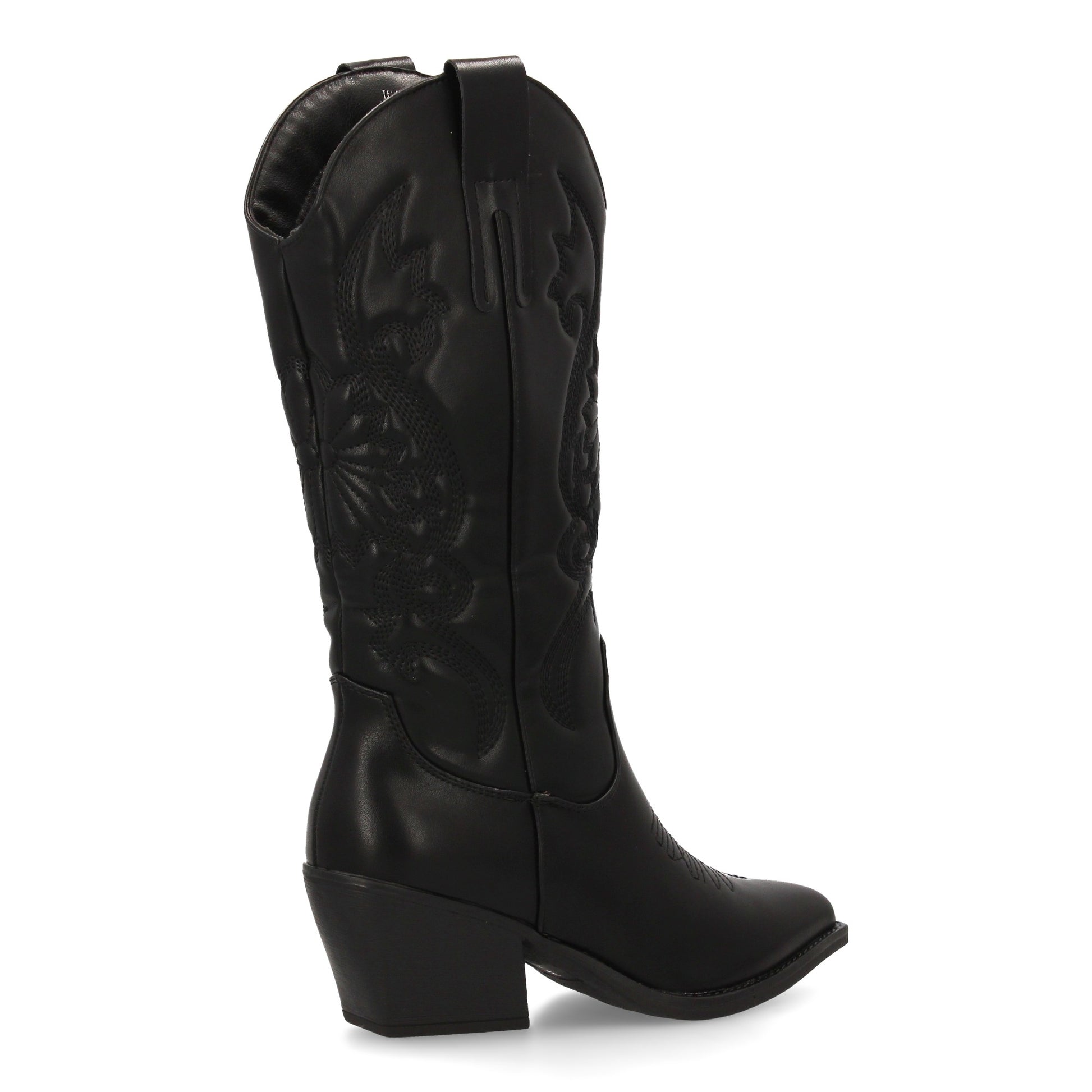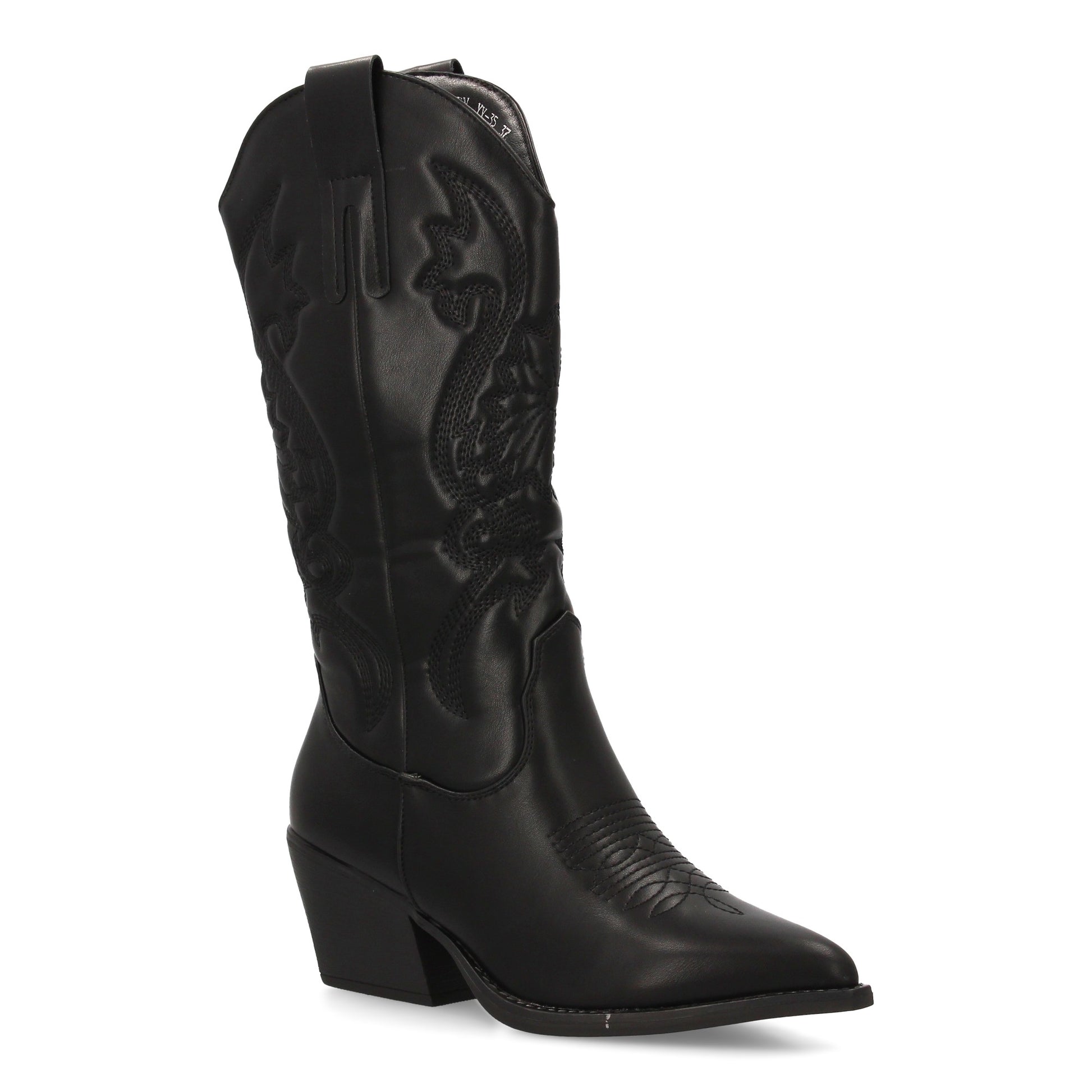 Bota cowboy de caña alta con bordado en relieve y punta afilada.
